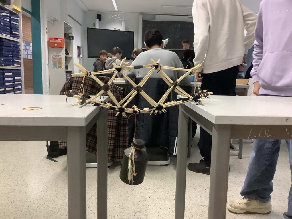 Das Projekt durchlief mehrere Phasen: Zunächst entwarfen die Schülerinnen und Schüler in Gruppen Skizzen und entwickelten Strategien für maximale Stabilität. In der anschließenden Bauphase konnten sie verschiedene Techniken ausprobieren und ihre Ideen praktisch umsetzen. Den Höhepunkt bildete die Testphase, in der sich zeigte, welche Brücken das vorgegebene Gewicht tragen konnten. Ein spannender Moment, der die Bedeutung von Statik und durchdachter Konstruktion eindrucksvoll verdeutlichte.