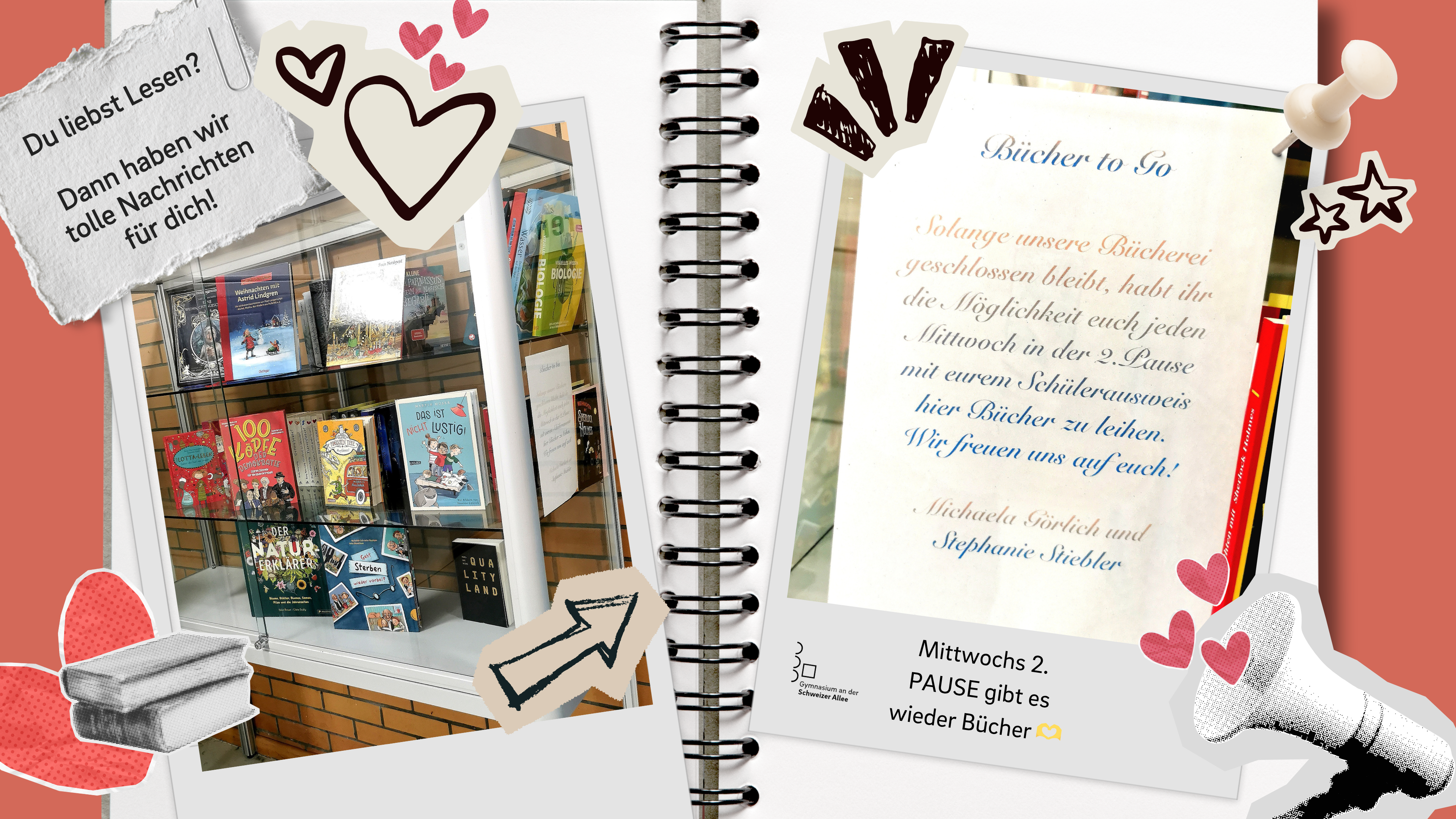 Also: Schülerausweis nicht vergessen und mittwochs in der 2. Pause vorbeischauen – wir freuen uns auf zahlreiche Bücherfreunde!