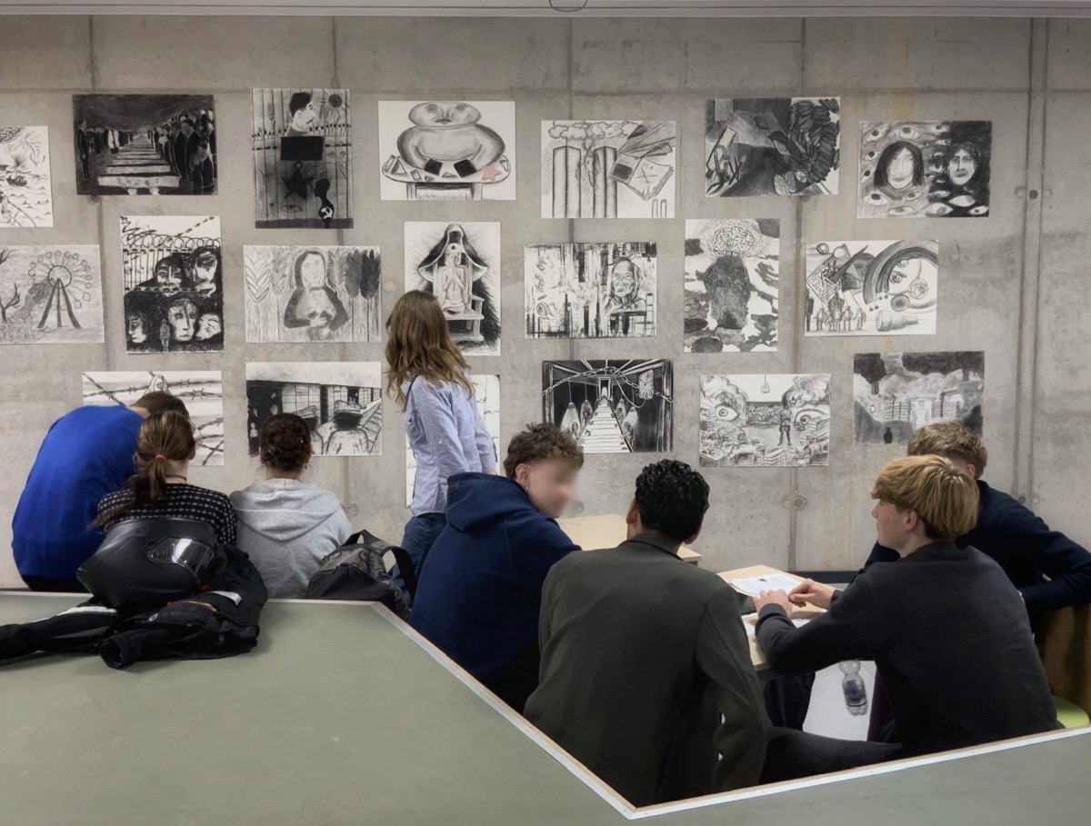 Als methodisches Vorbild diente das Werk des südafrikanischen Künstlers William Kentridge. Inspiriert von seiner Technik nutzten die Lernenden Kohle, um durch Wischen, Schichten und starke Hell-Dunkel-Kontraste die Vielschichtigkeit von Erinnerung und Vergessen visuell erfahrbar zu machen.