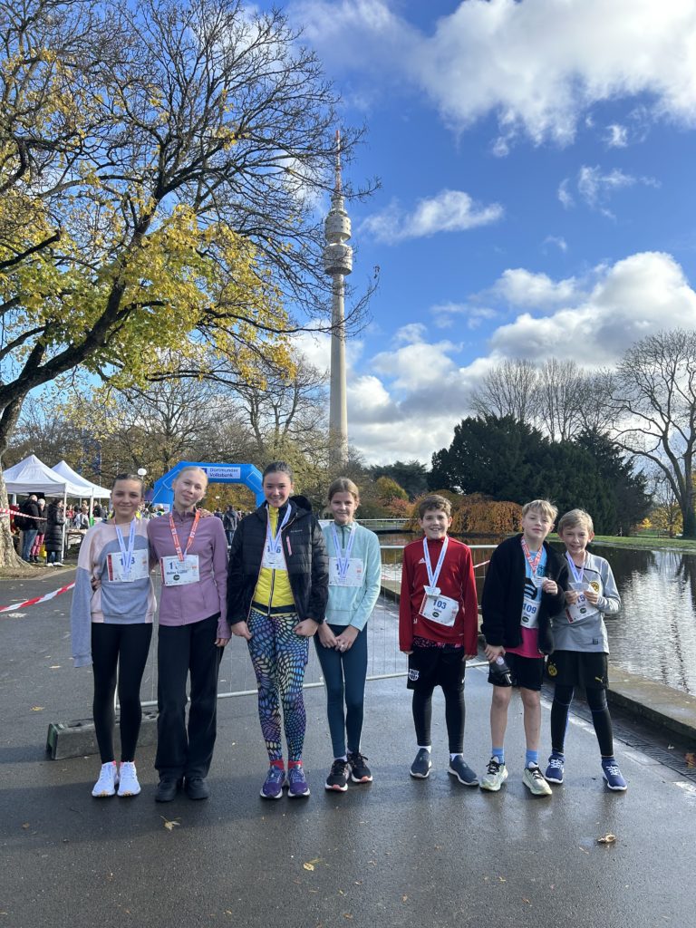 Am 02.11.2025 bewiesen acht unsere Schülerinnen und Schüler sowie vier unsere Lehrkräfte, dass bei ihnen nicht nur die Köpfe, sondern auch die Beine richtig fit sind! Bei den Stadtmeisterschaften im Westfalenparklauf, bei blauem Himmel und Sonnernschein war unser Team tatkräftig am Start.